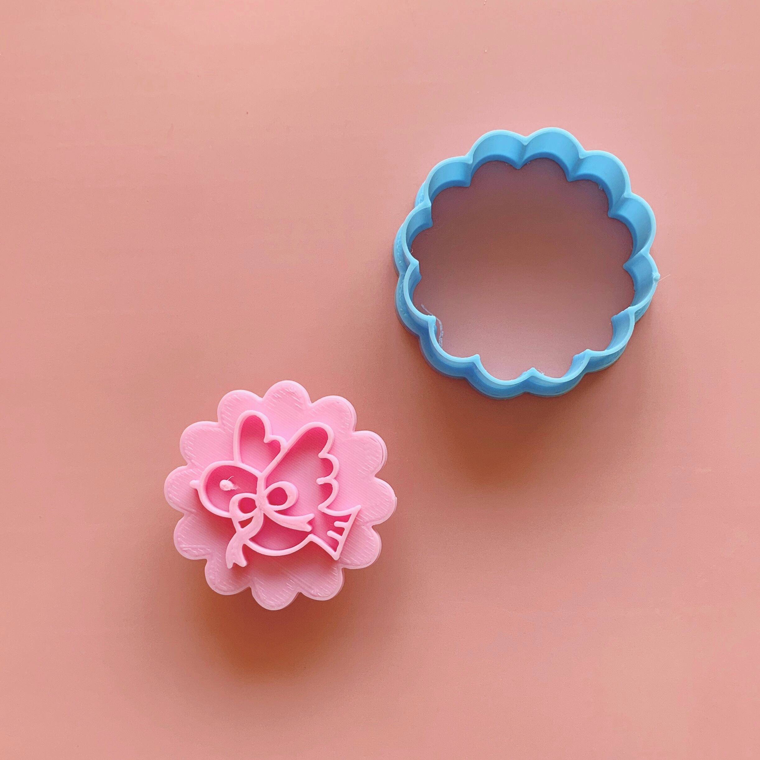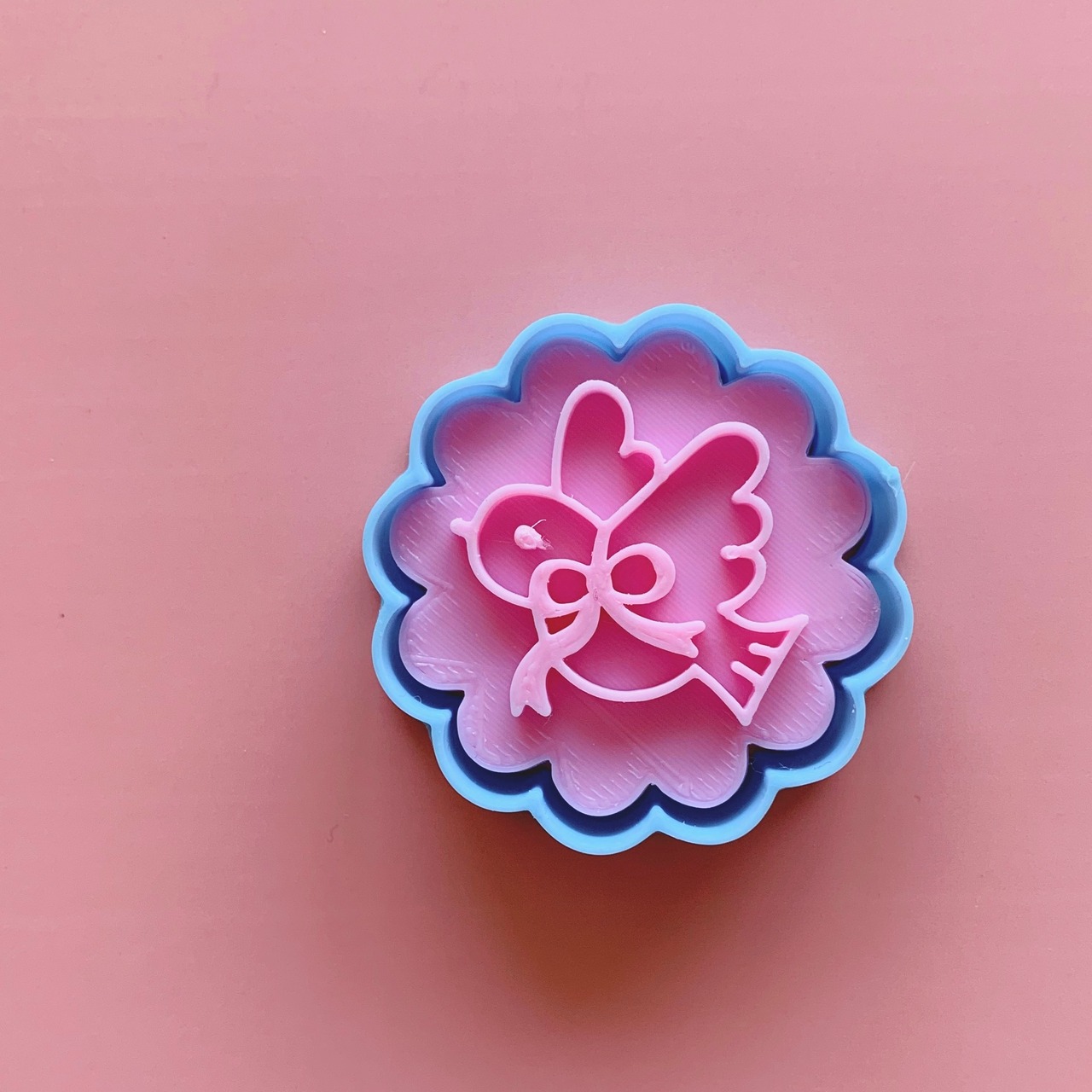 3Dプリンタで作った、鳥とリボン柄のクッキー型です。