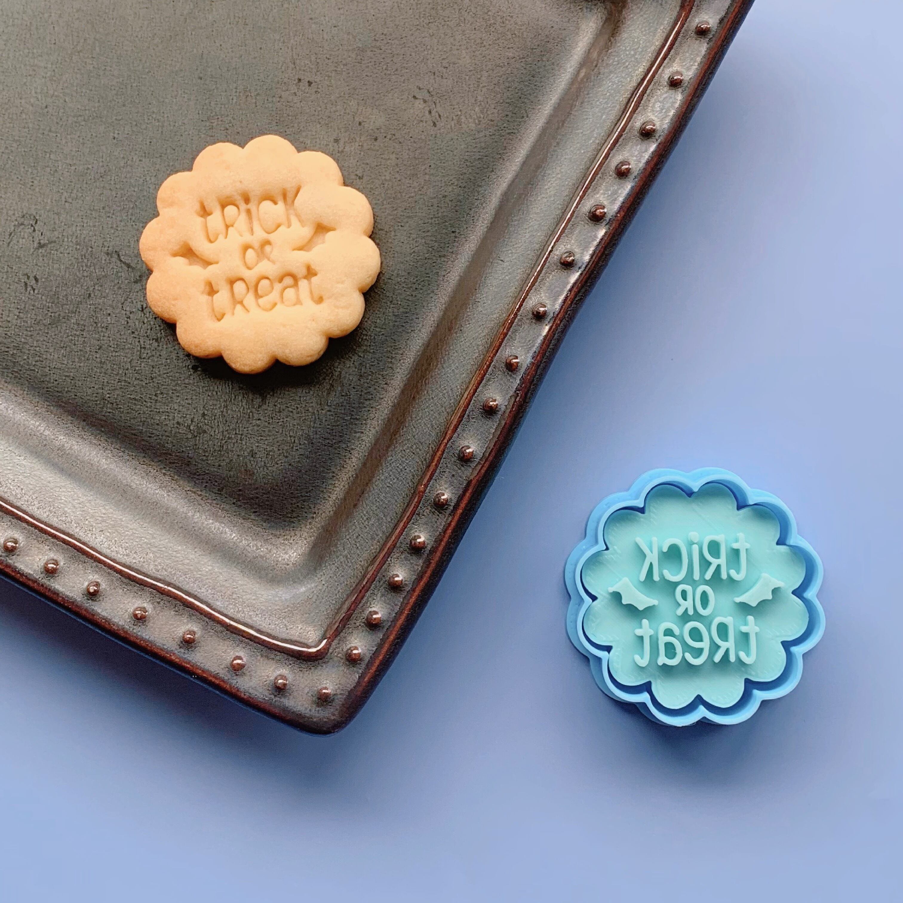 スタンプを押すだけでお洒落なロゴクッキーができあがり。