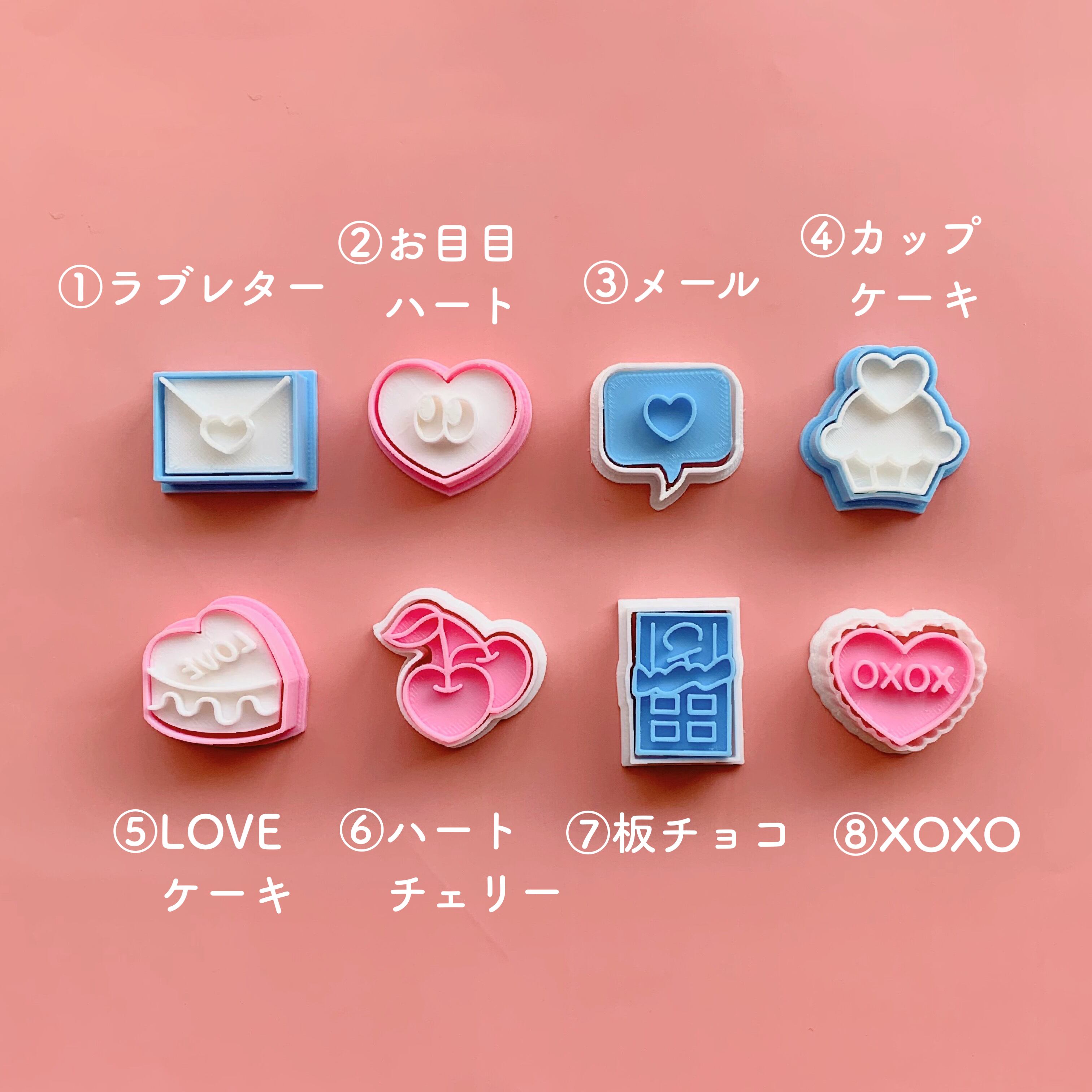こちらは8種類のミニミニ型のセットになります。